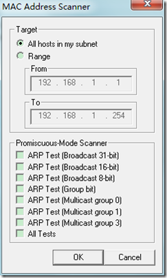 点击OK,回到主界面,这时点击那个小雷达标识开始进行arp欺骗
