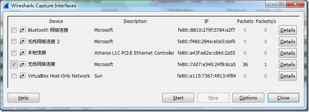 选择进行监听的网卡(也就是你进行上网的网卡),点击strat