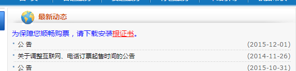 当用户访问 https://kyfw.12306.cn/otn/regist/init 如果没有导入其根证书的话那个浏览器上会显示一个不安全的提示