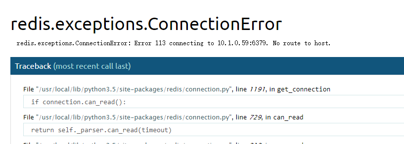 redis.exceptions.ConnectionError: Error 113 connecting to 10.1.0.59:6379. No route to host.