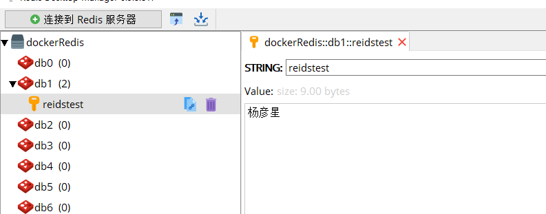 之后就可以使用redis客户端进行访问了,我在db1中创建了一个redistest的key